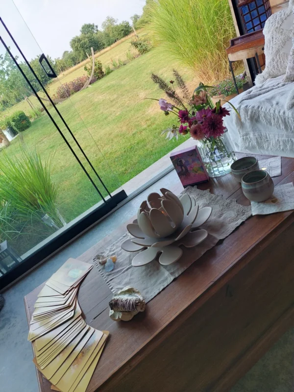 Ontdek de diepe verbinding met jezelf en je hart in een intieme sessie, gehouden in onze gezellige tuinhut met uitzicht op de velden en de natuur. Tijdens deze bijzondere ceremonie neem ik je mee op een reis van zelfontdekking, heling en verbinding.